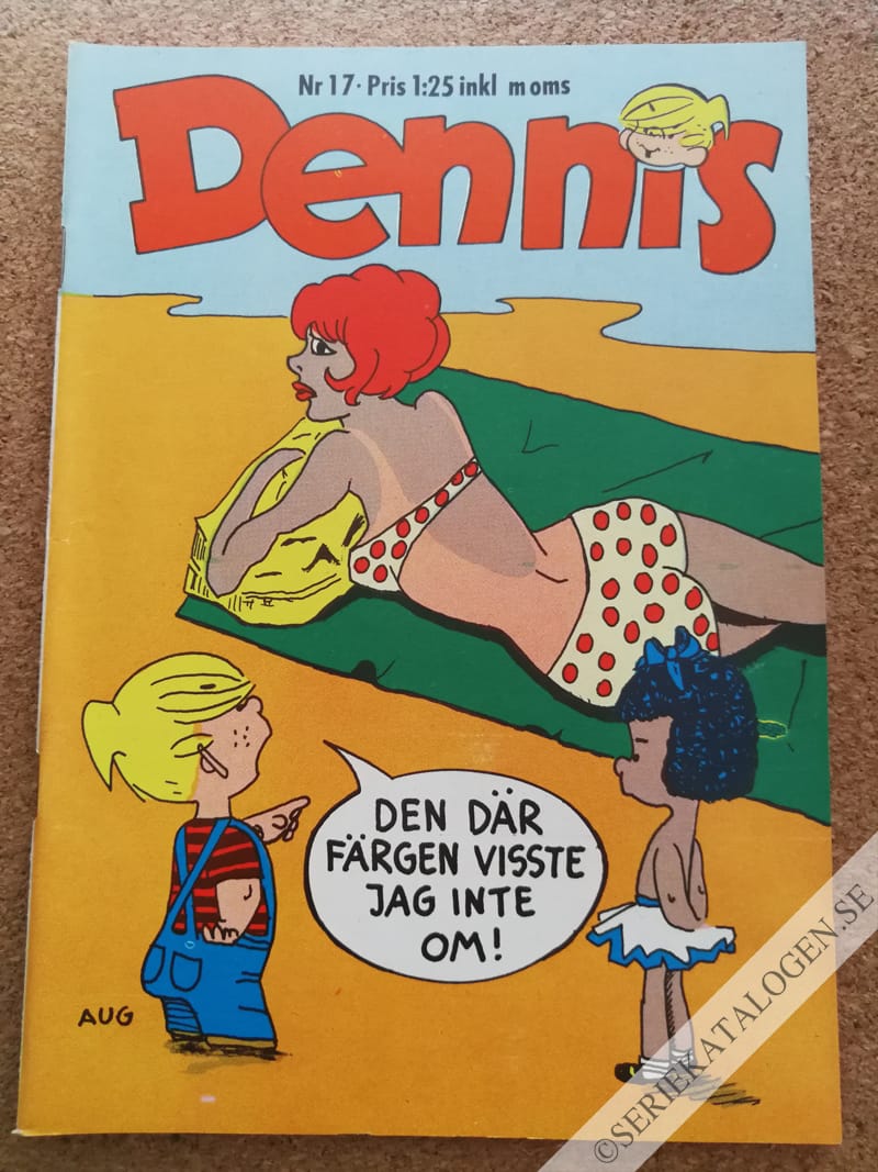 • Nr 17/1969: Dennis på omslaget, Peo nämns inte. Osedvanligt fult tecknat omslag, sannolikt svenskproducerat. Samma meddelande till "bråkiga" brevskrivare. Två Dennis-serier, "Vägens riddare" del 2 och "Modern konst" del 1. Båda copyright IM/HK som tidigare men BARA "Modern konst" är markerad som annons för Dennislandet. "Vägens riddare" har Skantic-svalor här och där som del av tävlingen.